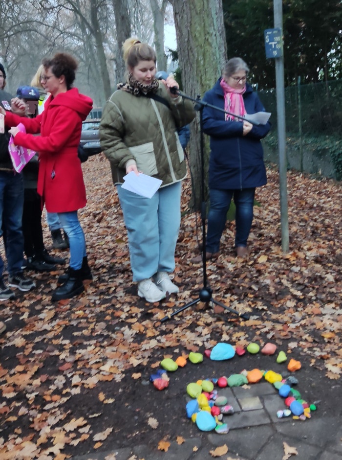 Die Woldenhorn-Schule hat auch in diesem Jahr am Gang des Erinnerns teilgenommen und den Stein von Anneliese in der Ernst-Ziese-Straße gereinigt und geschmückt.