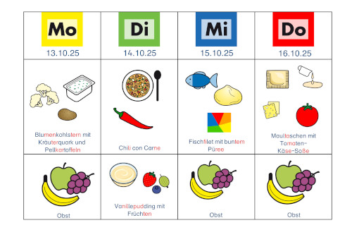 Der Essensplan wird durch den Arbeitskurs Medien von den Schülerinnen und Schülern erstellt. Manchmal kann es vorkommen, dass der Kurs nicht stattfinden kann. Dann wird der Essensplan so schnell wie möglich nachgereicht. Danke für ihr Verständnis.